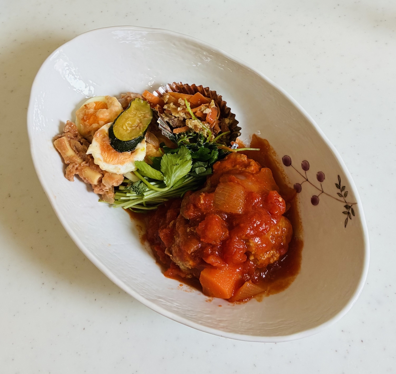 今日は午後から仕事… そんな日は家族全員 ワンプレート🍱。 ⭕️ハンバーグのトマト煮込み🍅 ⭕️にんじん🥕しりしり ⭕️卵🥚とズッキーニのチーズ焼き🧀 子どもたちも大きくなり、 別々にの時間を過ごすことが多くなり、 母としての役割もひと段落。 けどご飯作りだけは永遠のループ笑 美味しい😋と完食してくれると 幸せです✨ 今日も一日がんばろおー💪